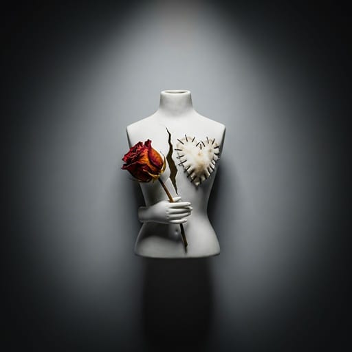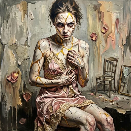 Una figura femenina (obvio), una mujer real, no una muñeca, pero hecha de porcelana rota.